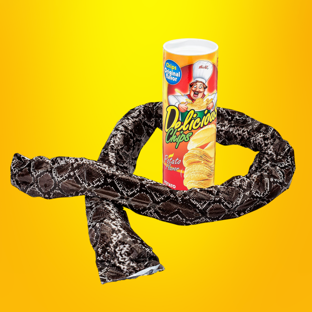Open the mixed nuts can and a spring snake jumps out to frighten your victim! Our NUTS SNAKE CAN is a jump for joy and will scare anyone.